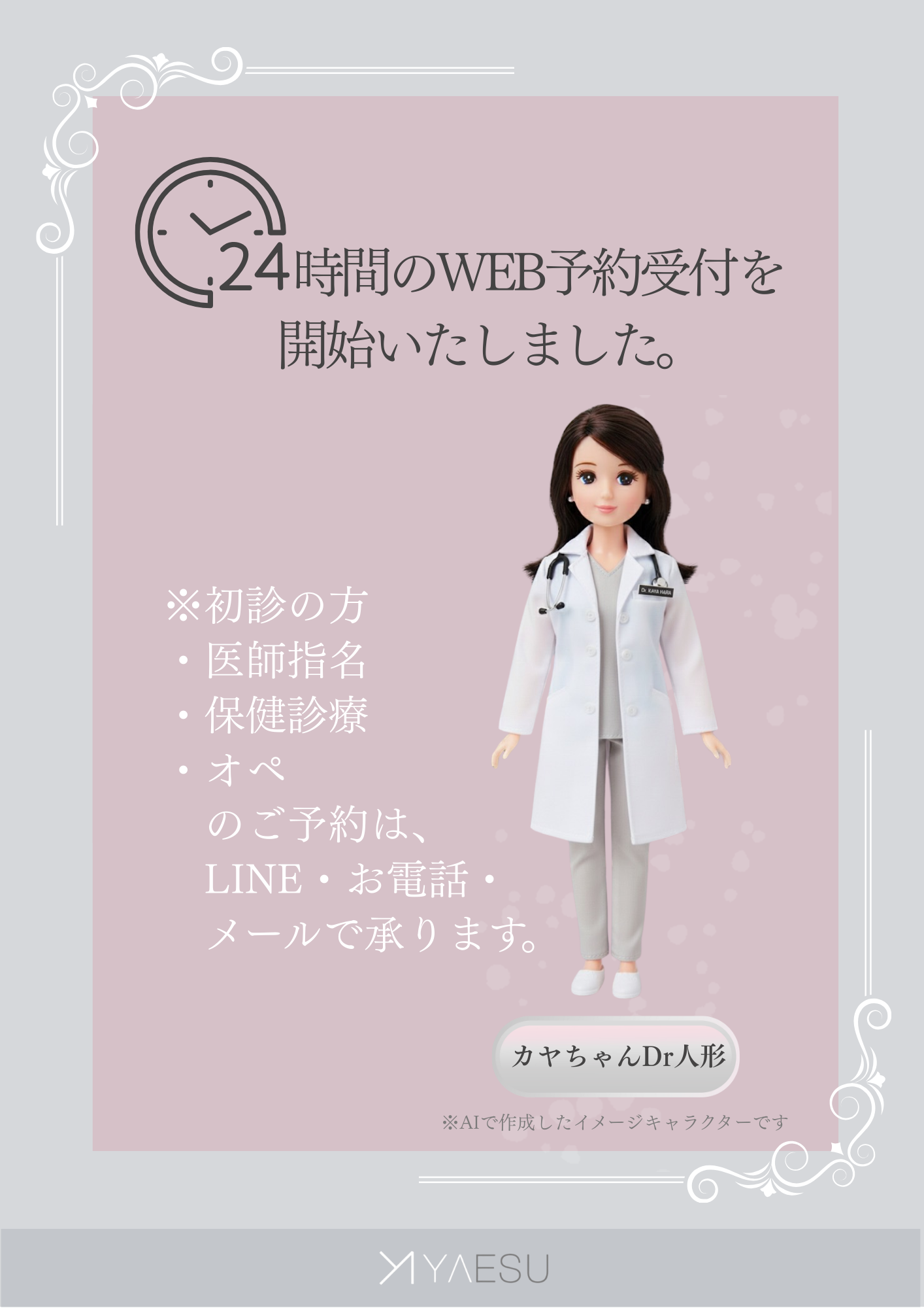 今まで、診療時間外また休診日にいただいたお問い合わせにつきましては、返答にお時間を要する場合があり、皆様にはご不便をおかけしておりました。